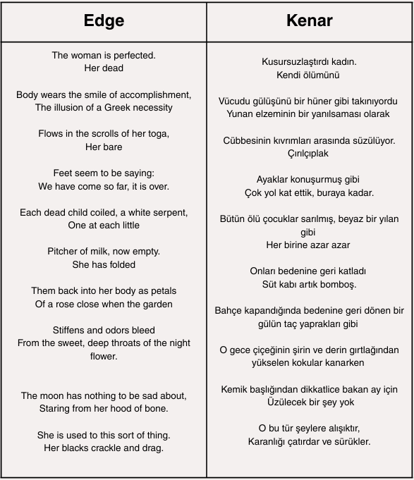 Hello, my name is Sılanaz Karvar. I am in the prep class at Karadeniz Technical University. I tried to translate one of the overlooked poems of Sylvia Plath. There are some specific reasons for it. Her poetry is known for deep depression, mental illness, the death-rebirth concept, female identity, anger, betrayal, and powerlessness. She has a complicated, depressive, and doomer mind, which is the core of her career. Generally, in the citations or books, I felt like we have similar mindsets in the aspect of depression or female identity, but they are not primary focus.