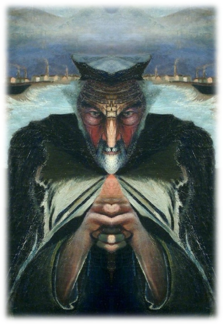 Bu noktadan sonra doğa düşmanca bir varlığa dönüşür. Fırtına, çürüme ve durgunluk başlar. Csontváry’nin tablosunun ayna yardımıyla görülebilen ikinci yüzü, bu dönüşümün görsel karşılığı gibidir. Bu versiyonda arka plan koyulaşır, figürün yüzü neredeyse şeytani bir ifadeye bürünür. Bakış artık yalnızca parlak değil, tehditkâr ve yargılayıcıdır. Coleridge’in şu dizeleriyle güçlü bir yankı kurar: